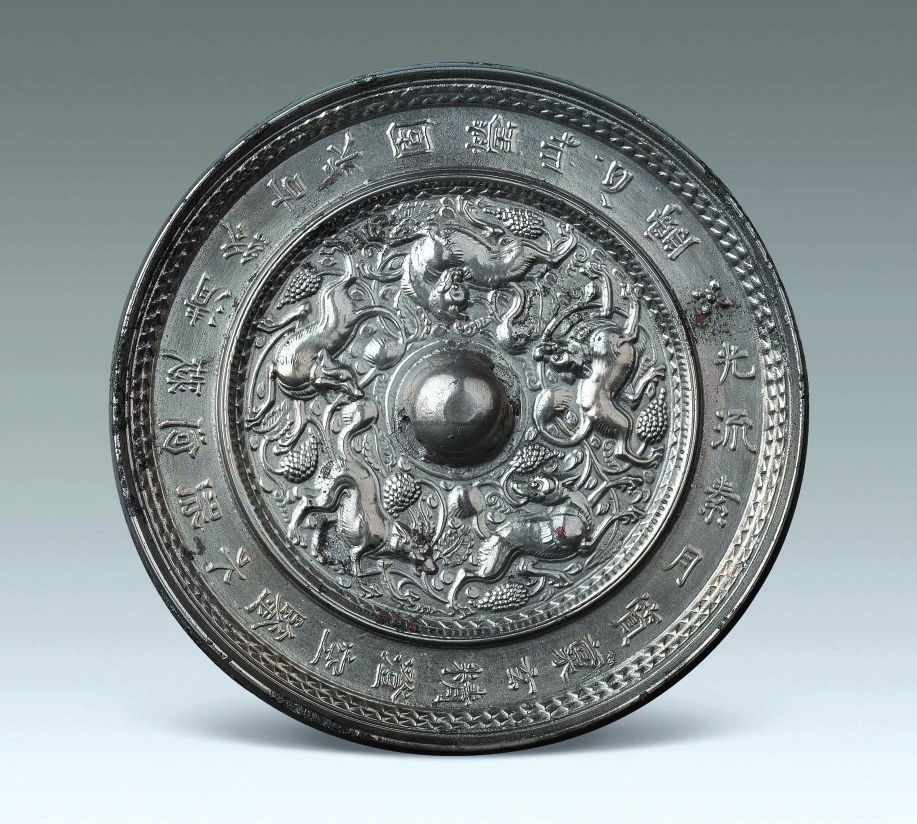 隋末唐初的一些銅鏡銘文,常將銅鏡比作明月,從中可以想見(jiàn)那時(shí)月亮的影子。有一些銅鏡可能是隋代鑄造的,到了初唐仍在使用。銅鏡紋飾布局仍沿襲漢鏡以來(lái)的歷史傳統(tǒng),鏡背內(nèi)區(qū)大多為動(dòng)物或植物紋飾,外區(qū)一周為銘文帶,陽(yáng)文楷書(shū)。鏡銘一般四字或五字為一句,用詞典雅,情真意切。雖然在這類鏡子背面看不到月亮的形象,但能感受到明月在當(dāng)時(shí)人們心中的崇高地位,所以才將日常所用的鏡子比作圓月。