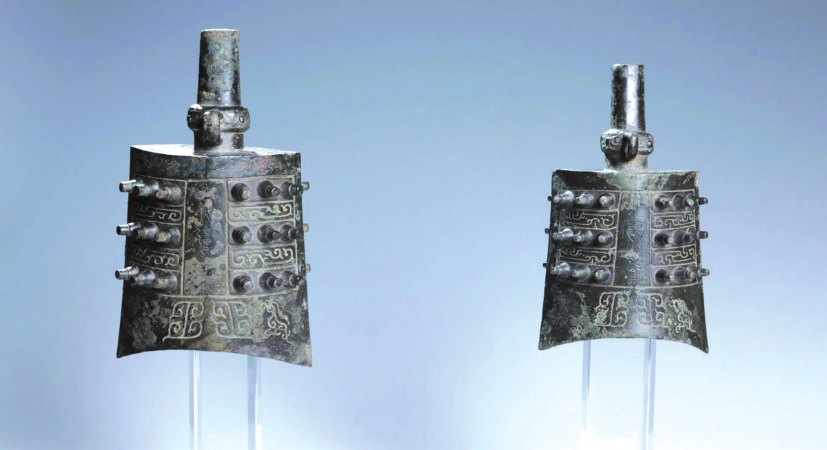 在形制上,編鐘有兩種——甬鐘和鈕鐘,最上面的平面立有“甬柱”的為甬鐘,立有“懸鈕”的則是鈕鐘。在我國已發(fā)現(xiàn)的甬鐘中,具有代表性的是晉侯蘇鐘,鑄造于西周,形制精確,音律精準(zhǔn)。鈕鐘西周晚期較多,三門峽出土的虢仲鈕鐘是目前已知最早的鈕鐘?!睹献印分杏涊d了一個關(guān)于鈕鐘的故事,孟子和學(xué)生高子親眼看到過一個夏禹時的鈕鐘,高子看到懸鈕像蟲蛀過一樣快斷了,猜測這是因為此鐘聲音好、用得多。