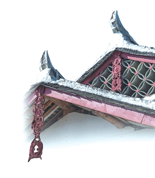 懸魚寓意豐富,蘊(yùn)含著古人對(duì)平安、幸福的向往。懸魚有祈求建筑免遭火災(zāi)的寓意,木結(jié)構(gòu)古建筑怕火,而魚為水中之物,懸魚有水能克火之意。不僅是懸魚,過去古建筑的屋頂上,常裝飾與水有關(guān)的意象,如龍、鴟吻、鰲魚、水草等。懸魚也有祈求吉祥、富貴有余等寓意。魚與“余”“?!敝C音,象征富余、富裕、吉慶有余。魚多子,也體現(xiàn)了人們祈求多子多孫的愿望。有的懸魚下端雕兩條尾部相交的游魚,寓意雙魚喜慶。懸魚除了使用魚的形象,也會(huì)采用其他紋樣,如蝙蝠紋樣,取“?!敝?;桃花、荷花、梅花、牡丹等紋樣,寓意吉祥、和美、富貴;花瓶紋樣,象征平安等。后來,懸魚不斷演化,有了卷云如意、飛禽等圖案,造型的式樣也日趨豐富。
