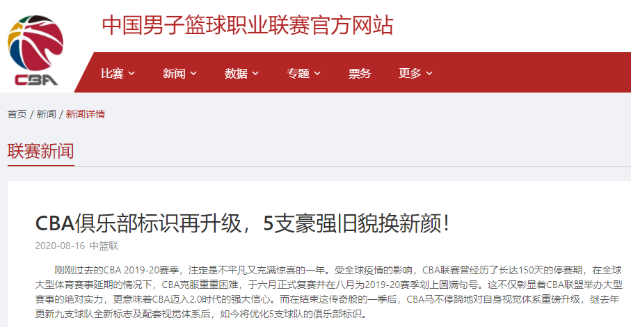 CBA官方網(wǎng)站截圖