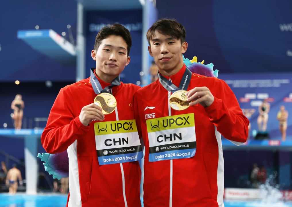 男雙3米板決賽中,王宗源/龍道一以442.41分的成績奪冠。這是王宗源繼2022布達(dá)佩斯、2023福岡后,第三次奪得世錦賽該項目冠軍。意大利組合馬爾薩利亞/托奇、西班牙組合阿瓦迪亞/博伊西爾分獲亞軍和季軍。