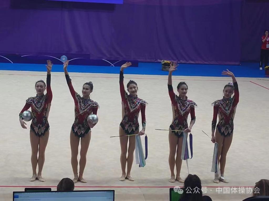 最終,中國隊(duì)在本站比賽共獲得1金1銀2銅。在集體項(xiàng)目里,中國隊(duì)獲得全能銀牌,5圈和3帶2球單項(xiàng)的銅牌。本賽季,集體組為備戰(zhàn)巴黎奧運(yùn)會(huì)準(zhǔn)備了兩套全新節(jié)目,其中5圈項(xiàng)目《共生共舞》呈現(xiàn)環(huán)保主題,更具國際化視野;3帶2球項(xiàng)目的成套《鳳鳴凌霄》則以漢唐國風(fēng)為主題,通過運(yùn)用彩帶模擬造型,表現(xiàn)古箏、琵琶等中國民族樂器的獨(dú)特韻味。