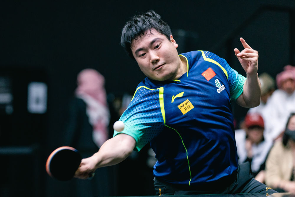 5月6日,中國(guó)選手梁靖崑在比賽中回球,他在男單第二輪比賽中2比3不敵伊朗選手阿拉米揚(yáng)。新華社發(fā)(WTT世界乒聯(lián)供圖)