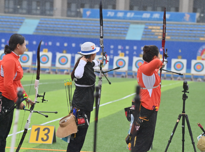 本次比賽共設(shè)置男子反曲弓個人、女子反曲弓個人、男子反曲弓團體、女子反曲弓團體、反曲弓混合團體5個競賽項目。當(dāng)日比賽中,江蘇隊、天津1隊、吉林1隊暫列女子反曲弓團體前三名,山東隊、上海1隊、廣東隊暫列男子反曲弓團體前三名。