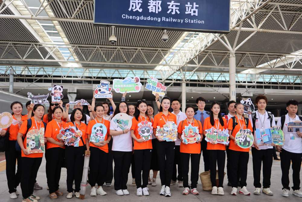8月6日,嘉賓們在成都東站站臺上合影。新華社發(fā)(呂國應 攝)