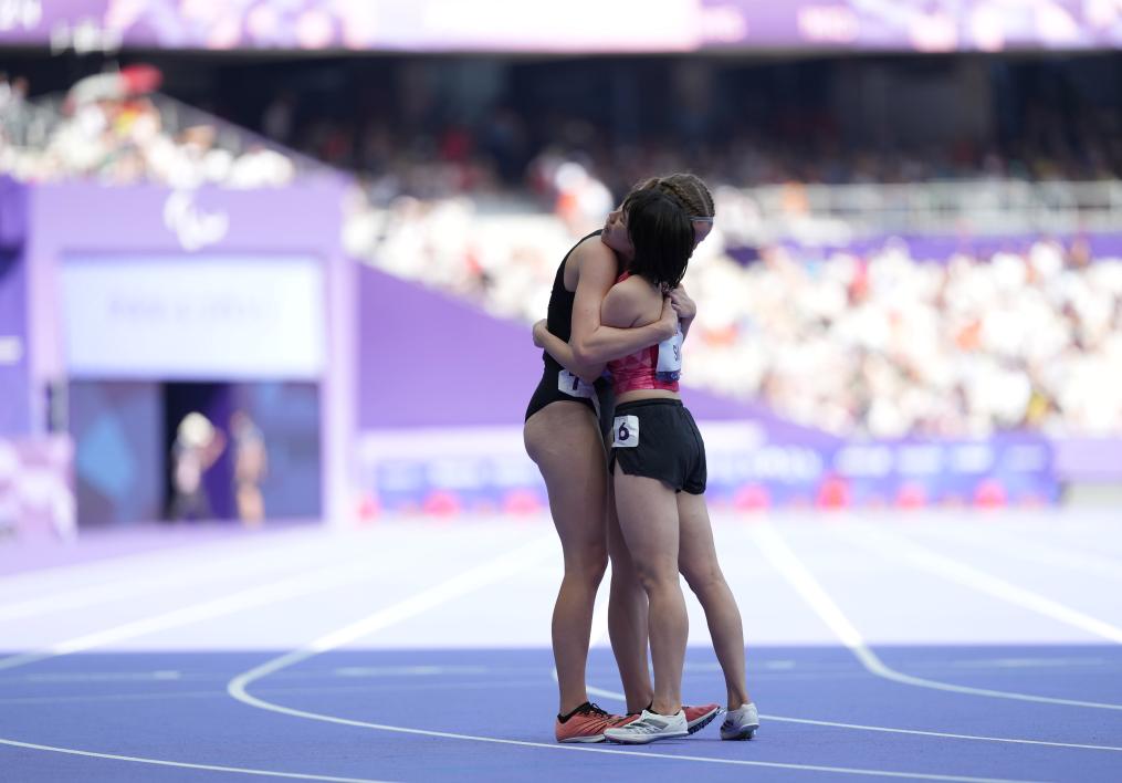 這是1日巴黎殘奧會女子200米T36級決賽中的一幕。中國選手史逸婷以27秒50的成績力壓該項(xiàng)目世界紀(jì)錄保持者、新西蘭選手丹妮爾奪冠,同時(shí)打破殘奧會紀(jì)錄。撞線后的史逸婷,趴在丹妮爾身上許久直不起身。