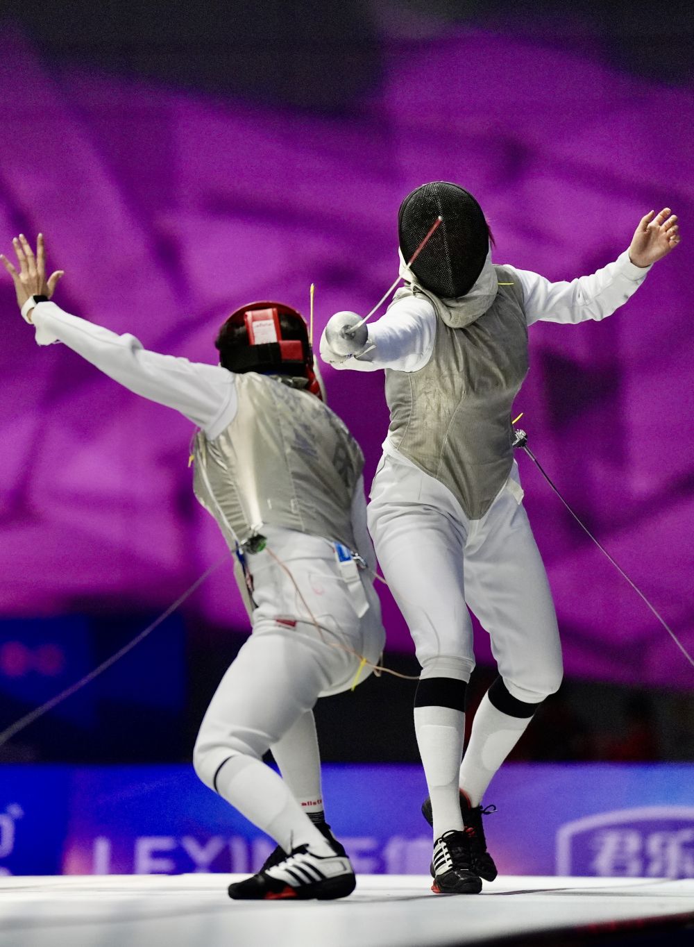 楊恒郁(右)在女佩團體決賽中