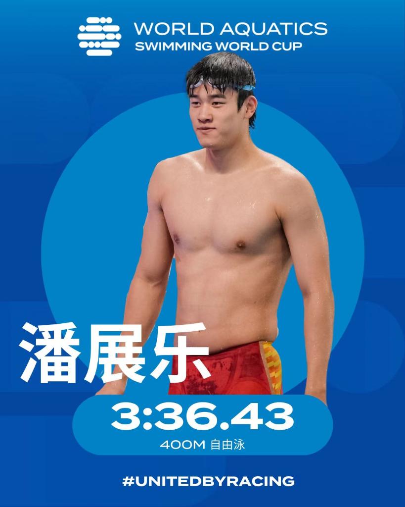在男子400米自由泳決賽中,潘展樂采取最后100米沖刺的方式強(qiáng)力反超其他選手,以3分36秒43的個人最好成績力拔頭籌,并達(dá)到參加年底布達(dá)佩斯短池世錦賽該項目的成績A標(biāo)。