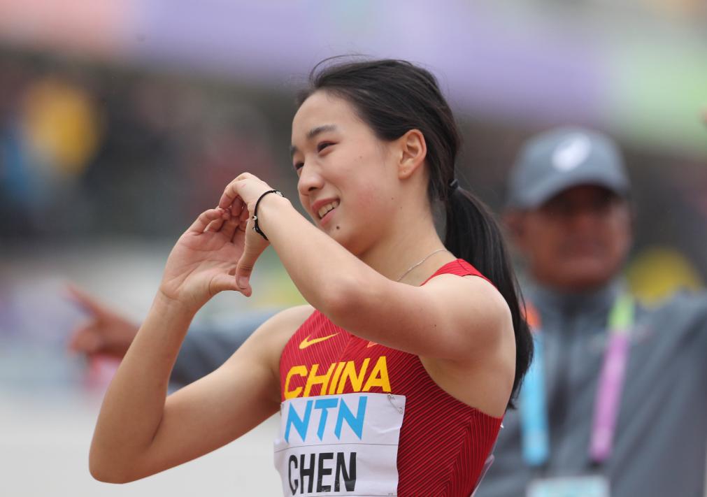 8月27日,中國(guó)選手陳妤頡在2024年世界田聯(lián)20歲以下錦標(biāo)賽(田徑世青賽)女子100米預(yù)賽后向觀眾致意。新華社發(fā)(瑪利亞娜·巴索攝)