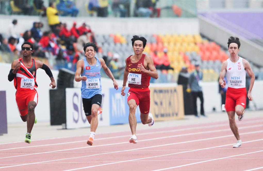 8月27日,中國(guó)運(yùn)動(dòng)員何錦櫶(左三)在2024年世界田聯(lián)20歲以下錦標(biāo)賽(田徑世青賽)男子100米預(yù)賽中。新華社發(fā)(瑪利亞娜·巴索攝)