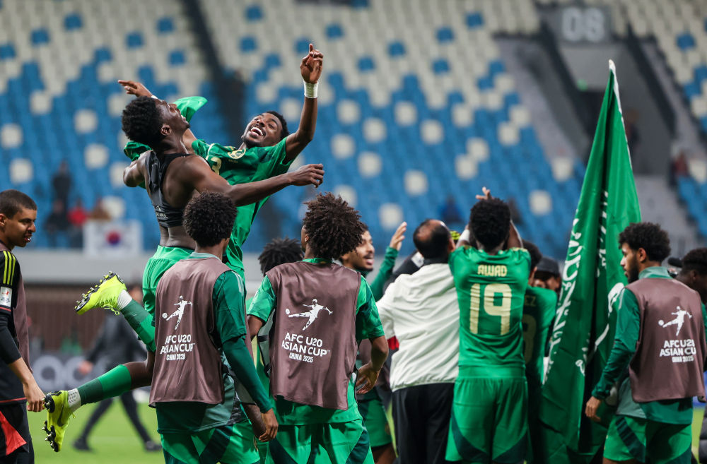 率先進(jìn)行的一場半決賽在沙特隊和韓國隊之間展開,韓國隊場上占優(yōu),但多次錯失破門良機,比賽被拖入點球大戰(zhàn),在四分之一決賽中撲出中國隊點球的沙特隊門將尚基提延續(xù)神勇,撲出韓國隊兩個點球,馬赫達(dá)維罰入制勝點球,幫助沙特隊3:2勝出。