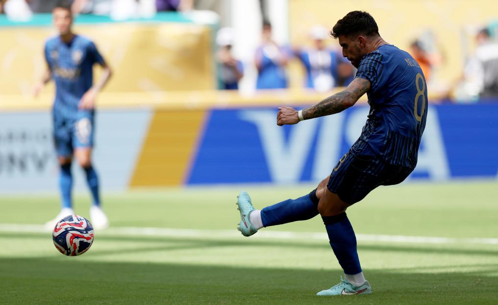 不過“白衣軍團”的領先優(yōu)勢并未保持太久,第41分鐘,皇馬中后衛(wèi)阿森西奧禁區(qū)內(nèi)拉人犯規(guī),被判罰點球,魯本·內(nèi)維斯主罰為利雅得新月扳平比分。