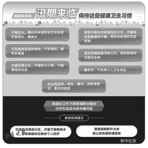 中國(guó)疾控中心衛(wèi)生應(yīng)急中心有關(guān)專家介紹,洪澇災(zāi)害易引起飲水水源污染,使災(zāi)區(qū)感染性腹瀉、痢疾等水源性和食源性疾病暴發(fā)風(fēng)險(xiǎn)增加。另外,洪水淹沒糞池、下水道等,導(dǎo)致動(dòng)物尸體腐敗,蚊蠅等媒介生物孳生,血吸蟲、乙腦等蟲媒及自然疫源性傳染病發(fā)生風(fēng)險(xiǎn)會(huì)相應(yīng)增加。