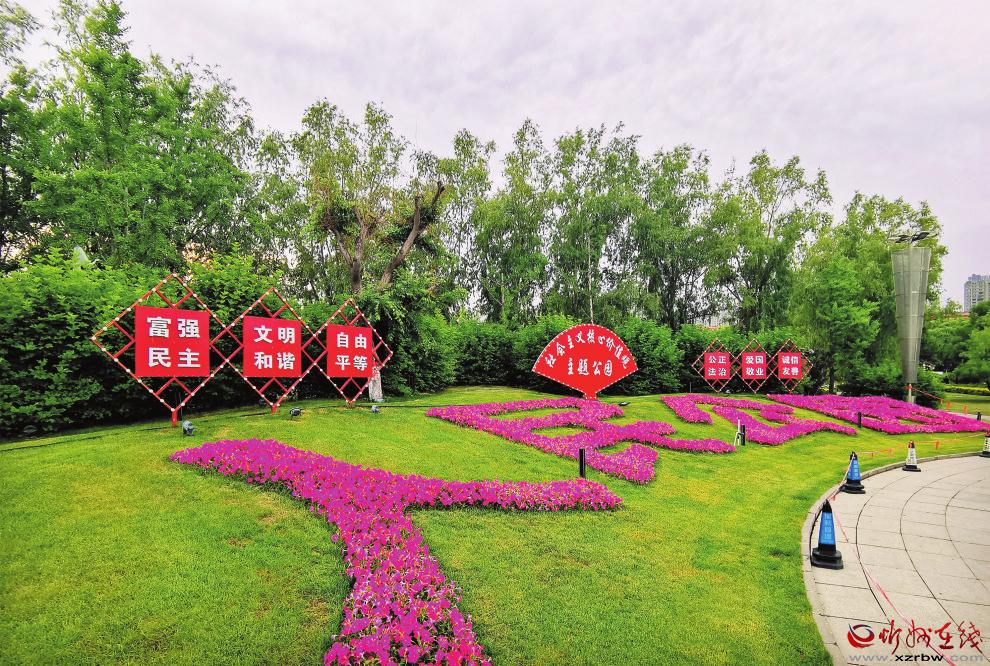 志愿者為過往群眾發(fā)放創(chuàng)文宣傳資料 本報通訊員 攝