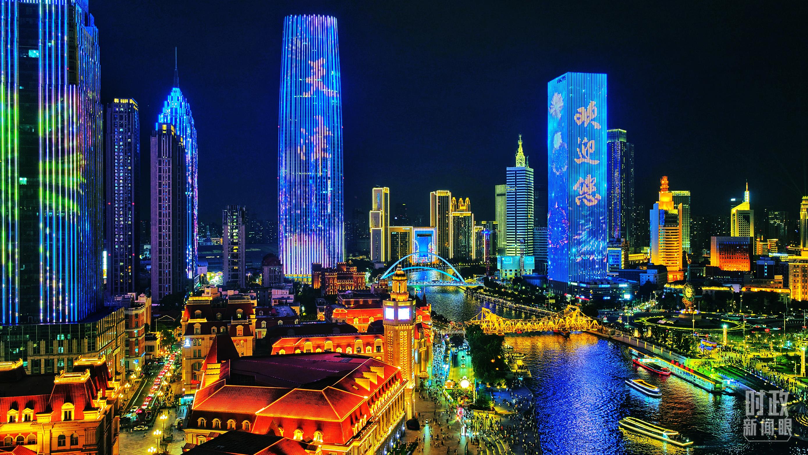 △天津海河上合峰會(huì)主題燈光秀。(視覺中國(guó))