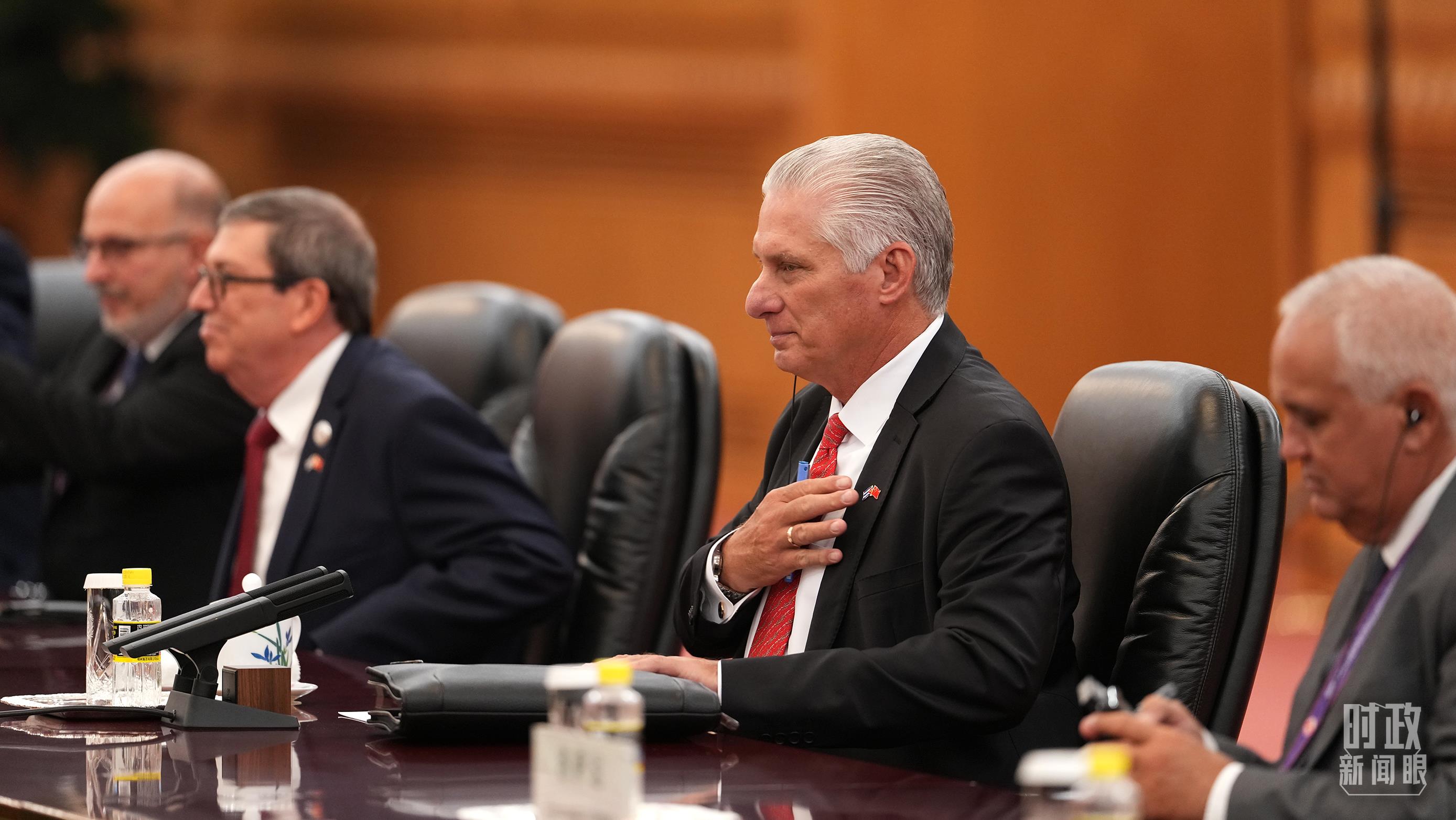 △古巴共產(chǎn)黨中央委員會(huì)第一書(shū)記、古巴國(guó)家主席迪亞斯-卡內(nèi)爾在會(huì)見(jiàn)中。(總臺(tái)記者李晉拍攝)