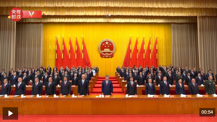 上午10時30分許,在歡快的樂曲聲中,習(xí)近平等領(lǐng)導(dǎo)同志走上主席臺,全場響起長時間的熱烈掌聲。
