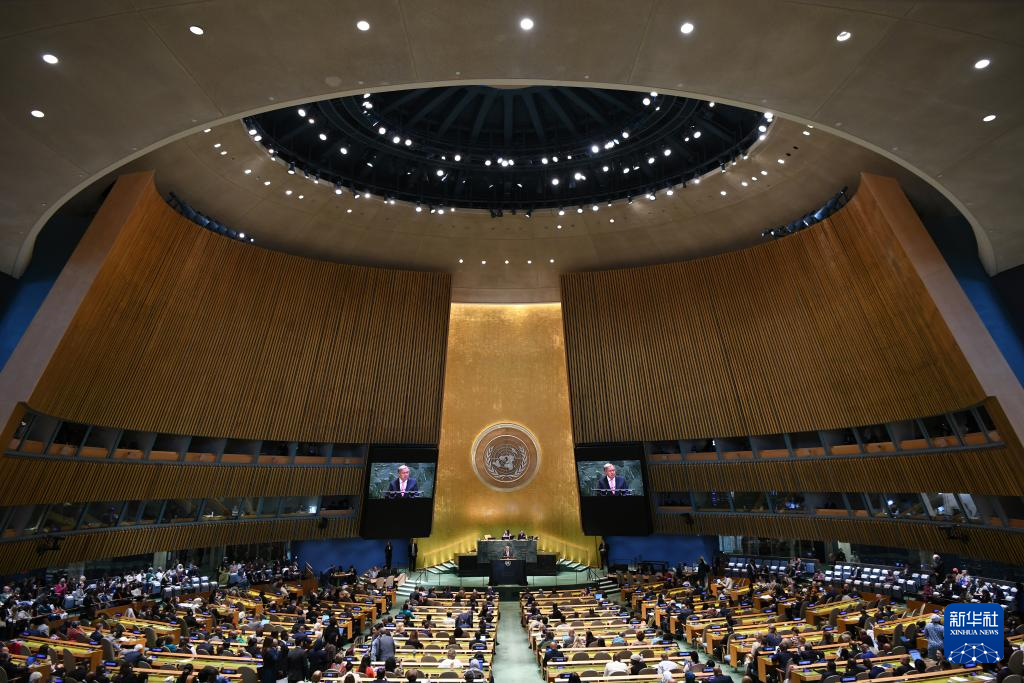 這是2025年9月22日在位于紐約的聯(lián)合國總部拍攝的聯(lián)合國大會(huì)紀(jì)念北京世婦會(huì)30周年高級別會(huì)議現(xiàn)場。新華社記者 李睿 攝