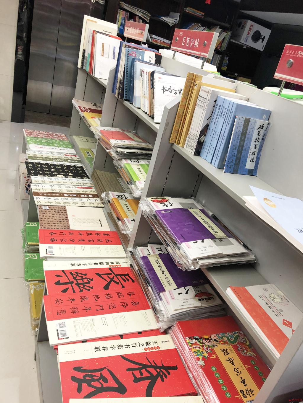 忻州市新華書(shū)店圖書(shū)館開(kāi)展“倡導(dǎo)全面閱讀 推進(jìn)文明建設(shè)”活動(dòng),暑假以來(lái),來(lái)書(shū)店看書(shū)、購(gòu)書(shū)的人與日俱增,其中銷(xiāo)售最熱的是兒童文學(xué)以及教輔類(lèi)書(shū)籍。針對(duì)這部分讀者,書(shū)店提前儲(chǔ)備了足夠的書(shū)籍,豐富學(xué)生暑期生活。圖為館內(nèi)吸引人的毛筆字帖區(qū),館長(zhǎng)介紹,開(kāi)辟這一區(qū)主要是為了讓讀者了解中國(guó)文字的博大精深。(盧相汀 攝)
