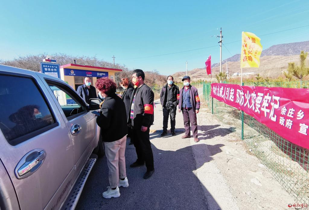 清明節(jié)期間,寧武縣及早部署,提前準(zhǔn)備,周密計劃,全面落實森林草原防滅火各項要求,各林場、鄉(xiāng)鎮(zhèn)、村“兩委”人員及護(hù)林員堅守崗位,通過站山頭、守墳地、把路口、巡林地,嚴(yán)格火源管控,加大宣傳力度,切實做到防患于未然。圖為寧武縣余莊鄉(xiāng)小木場村警保合作勸導(dǎo)站嚴(yán)查進(jìn)村進(jìn)山車輛及人員。 (記者張建國攝)