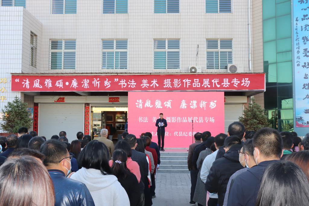 本次“清風雅頌·廉潔忻州”書法美術攝影作品展,在代縣專場展出為期三天,入展作品共260幅,其中包括忻州市部分國家級名家特邀作品47幅,省內外助展作品23幅,我縣作品15幅。展出作品分為攝影圖片、書法藝術、繪畫和剪紙四個部分,作品主題鮮明,風格多樣,作者以書畫為載體,深入挖掘書畫藝術的廉潔內涵,以畫承廉、畫賦廉意,結合傳統(tǒng)文化和現(xiàn)代手法,把理想信念、從政道德等反腐倡廉教育內容,形象、生動、直觀地傳遞給廣大黨員干部群眾,使大家在欣賞中得到啟示,在愉悅中受到教育,讓代縣全體黨員干部在潛移默化中受到廉潔教育影響,同時營造“以廉為榮、全民崇廉”的黨風廉政建設新格局。