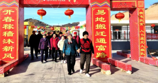 大峪坪易地搬遷點(diǎn)是晉中市太谷區(qū)完成整村搬遷入住的第一村,春節(jié)前夕,村兩委班子張羅著將小區(qū)布置一新,大門(mén)口制作了喜慶醒目的迎春牌樓,牌樓兩側(cè)寫(xiě)有群眾自編的新春聯(lián),上聯(lián)是:開(kāi)春稼穡沐新風(fēng),下聯(lián)是:易地搬遷通富路。東側(cè)的門(mén)柱上寫(xiě)著:精準(zhǔn)扶貧,入小康無(wú)人掉隊(duì)。