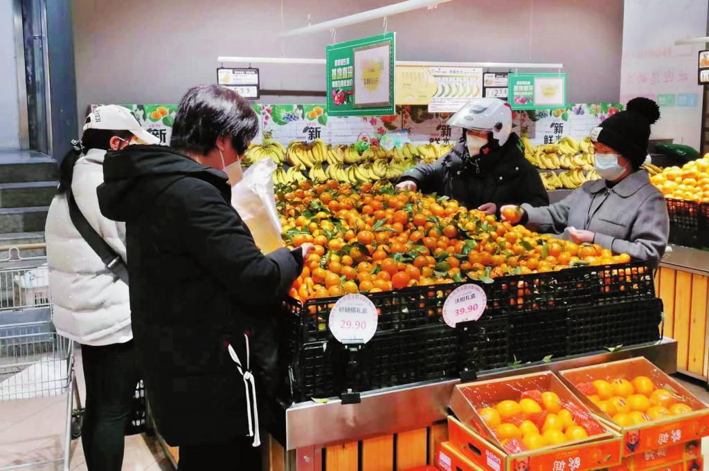 在忻府區(qū)家家利超市七一路店,記者看到超市已換上“紅裝”,裝飾得紅火熱鬧,貨架上擺滿了各式各樣的禮盒,米、面、油、蔬菜等商品應(yīng)有盡有,喜慶氣氛撲面而來?!盀楦玫貪M足廣大市民的購物需求,我們超市從生鮮果蔬,糧油調(diào)料到日常百貨,都將保證貨源充足、穩(wěn)價供應(yīng),并且所有門店節(jié)日期間不打烊。”超市負(fù)責(zé)人胡宗保介紹說。