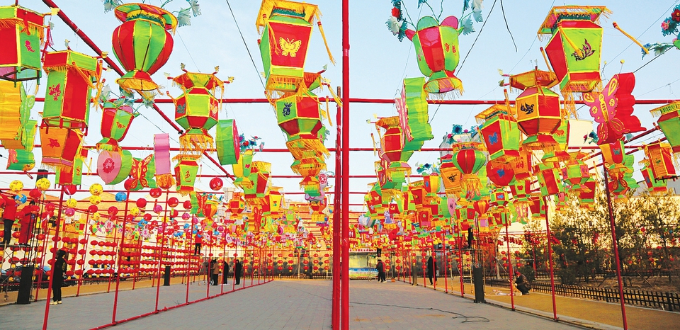 “自北宋建村以來,村里就有做花燈迎新年的傳統(tǒng)。相傳至今,上至80歲老人,下到20歲出頭青年,村里一多半人都有做花燈的手藝。”豆莊村村民霍書應(yīng)邊指揮大家掛花燈邊說。