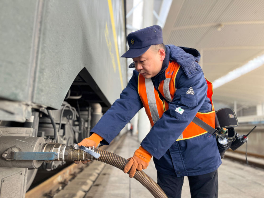 作為山西境內唯一的通過車吸污作業(yè)點,太原南站吸污作業(yè)點全年無休,承擔著通過太原南站的普速、動車、高鐵的吸污作業(yè)。春運期間,吸污工作量加大,除去臨時加增的吸污作業(yè)任務,每天從早上7點至夜間12點,固定有14輛列車需要進行吸污作業(yè)。