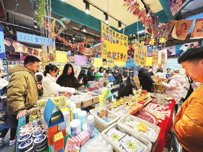 圖②2月11日,太原鐘樓街,市民正在挑選購(gòu)買年貨。