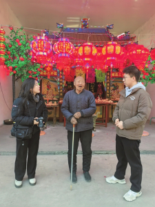 呂梁記者站記者要佳(左)、秦嘉良(右)在柳林縣穆村鎮(zhèn)沙曲村采訪國(guó)家級(jí)非物質(zhì)文化遺產(chǎn)代表性項(xiàng)目——盤子會(huì)。