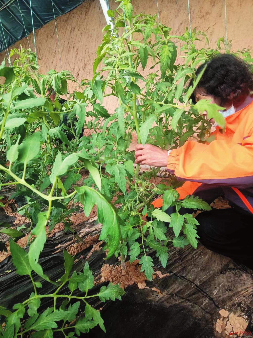據(jù)了解,該大棚的管控依托于整個南作村周邊大田環(huán)境監(jiān)測設備對周邊環(huán)境的數(shù)據(jù)采集,利用風速傳感器、風向傳感器、雨量傳感器、太陽能土壤墑情數(shù)據(jù)采集,對土壤溫濕度電導率、土壤PH值傳感器中氮磷鉀信息進行實時采集。并配備了蟲情設備檢測儀器,通過太陽能蟲情測報燈、自動清蟲太陽能殺蟲燈、交流電殺蟲燈對大棚和大田的蟲情進行殺蟲處理。通過智能數(shù)據(jù)采集將大棚中的空氣溫濕度、光照強度、二氧化碳、大氣壓等信息實時導入管理系統(tǒng),根據(jù)其數(shù)值和農(nóng)業(yè)作物的數(shù)據(jù)需求,實現(xiàn)自動卷簾調(diào)節(jié)溫濕度。另外,根據(jù)農(nóng)作物的營養(yǎng)需求,應用水肥一體化設備把營養(yǎng)液和預防藥物進行了自動化的管控,確保農(nóng)作物生長在健康的環(huán)境中,產(chǎn)出市民放心的蔬菜。圖為技術人員在察看番茄結果狀況。 (本報記者 李 濤攝)