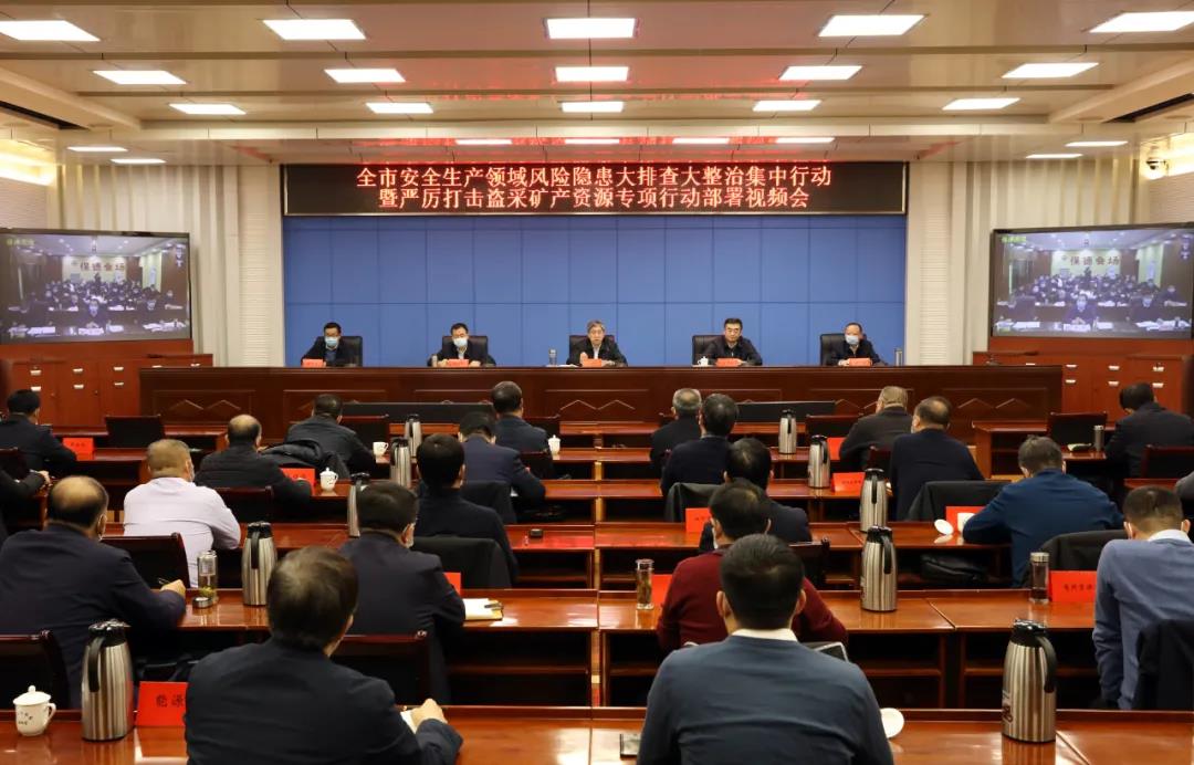 12月21日,全市安全生產(chǎn)領(lǐng)域風(fēng)險隱患大排查大整治集中行動暨嚴(yán)厲打擊盜采礦產(chǎn)資源專項行動部署會召開,貫徹全省會議精神,安排我市當(dāng)前工作。市委書記朱曉東主持會議并作重要講話,強(qiáng)調(diào)歲末年關(guān)各項工作千頭萬緒,安全生產(chǎn)的嚴(yán)峻性、艱巨性、緊迫性尤為突出,各級各部門務(wù)必高度重視,從嚴(yán)警醒起來,堅決杜絕麻痹僥幸心理、松懈情緒,以永遠(yuǎn)在路上的心態(tài),以一切從零開始的作為,堅持兩手用力,推進(jìn)兩個行動,全面落實好省委省政府和市委市政府部署要求,堅決守牢安全生產(chǎn)底線。市委副書記、市政府黨組書記李建國,市委常委、常務(wù)副市長趙新年,副市長、市公安局長袁小波,市政府秘書長張艮生出席會議。會議以視頻方式召開,各縣(市、區(qū))設(shè)分會場,兼任縣(市、區(qū))職務(wù)的市領(lǐng)導(dǎo)在分會場出席會議。市政府安委會成員單位和相關(guān)重點企業(yè)負(fù)責(zé)人在市主會場參加會議。