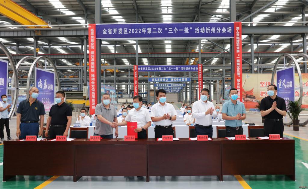 在定襄經(jīng)濟(jì)技術(shù)開發(fā)區(qū)寶航重工有限公司車間,與省主會(huì)場(chǎng)同步,李建國主持舉行了忻州市“簽約一批”代表項(xiàng)目集中簽約活動(dòng)。忻州經(jīng)濟(jì)開發(fā)區(qū)與山西汽運(yùn)集團(tuán)“汽運(yùn)網(wǎng)絡(luò)貨運(yùn)數(shù)字產(chǎn)業(yè)園項(xiàng)目”、原平經(jīng)濟(jì)技術(shù)開發(fā)區(qū)與山西晉海清潔能源有限公司“500MW/1GWh共享儲(chǔ)能電站項(xiàng)目”、繁峙經(jīng)濟(jì)技術(shù)開發(fā)區(qū)與山西華茂智能新材料有限公司“綜合治理提升工程項(xiàng)目”、定襄經(jīng)濟(jì)技術(shù)開發(fā)區(qū)與德福基金屬制品有限公司“年加工5000噸鋼材項(xiàng)目”、靜樂現(xiàn)代農(nóng)業(yè)產(chǎn)業(yè)示范區(qū)與北京中和智谷循環(huán)經(jīng)濟(jì)科技有限公司“200MW農(nóng)牧光儲(chǔ)一體化項(xiàng)目”、神池現(xiàn)代農(nóng)業(yè)產(chǎn)業(yè)示范區(qū)與中國郵政集團(tuán)“郵件處理中心項(xiàng)目”、五臺(tái)現(xiàn)代農(nóng)業(yè)產(chǎn)業(yè)示范區(qū)與雄縣方濟(jì)商貿(mào)有限公司“特色豆制品加工項(xiàng)目”、岢嵐經(jīng)濟(jì)技術(shù)開發(fā)區(qū)與中科人工智能科技有限公司“航天科技產(chǎn)業(yè)園項(xiàng)目”等8個(gè)代表項(xiàng)目分兩個(gè)批次進(jìn)行了簽約。