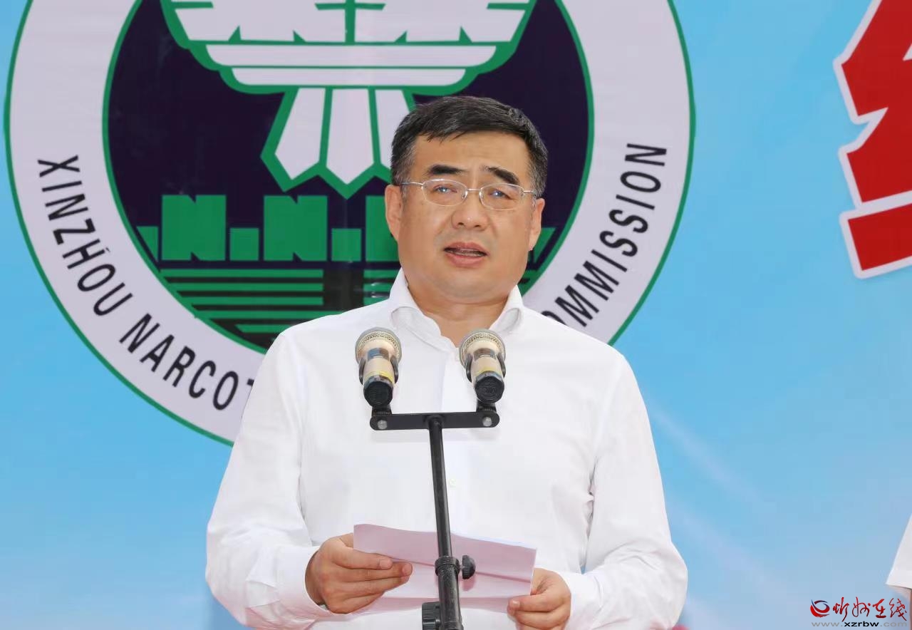李建國(guó)代表市委、市政府向長(zhǎng)期奮戰(zhàn)在禁毒一線的工作者致以崇高敬意,向關(guān)心支持我市禁毒工作的社會(huì)各界表示衷心感謝。他說(shuō),近年來(lái),市委、市政府認(rèn)真貫徹習(xí)近平總書記關(guān)于禁毒工作的重要指示精神,全面落實(shí)黨中央、國(guó)務(wù)院、省委、省政府禁毒工作決策部署,堅(jiān)持把禁毒工作作為平安創(chuàng)建、文明創(chuàng)建的重要內(nèi)容,強(qiáng)化綜合治理、打擊違法犯罪,全市禁毒形勢(shì)持續(xù)向好,為維護(hù)良好社會(huì)秩序提供了有力保障。但同時(shí)要看到,禁毒工作不能有絲毫懈怠,各級(jí)黨委政府要把禁毒工作列入重要議事日程,做到常抓常議、有力有效;各級(jí)公安機(jī)關(guān)要切實(shí)發(fā)揮禁毒主力軍作用,加大打擊力度,加強(qiáng)源頭治理,深入開(kāi)展“清源斷流”行動(dòng)和農(nóng)村毒品問(wèn)題治理,堅(jiān)決杜絕因毒致貧、因毒返貧以及涉毒人員肇事肇禍行為發(fā)生;要充分發(fā)揮禁毒教育基地職能作用,有序組織開(kāi)展中小學(xué)生禁毒學(xué)習(xí)教育,不斷增強(qiáng)青少年識(shí)毒、拒毒、防毒的意識(shí)和能力;要深入開(kāi)展“禁毒宣傳進(jìn)萬(wàn)家”活動(dòng),為創(chuàng)建無(wú)毒平安忻州貢獻(xiàn)力量,為忻州全方位推動(dòng)高質(zhì)量發(fā)展創(chuàng)造更加安全穩(wěn)定的社會(huì)環(huán)境。
