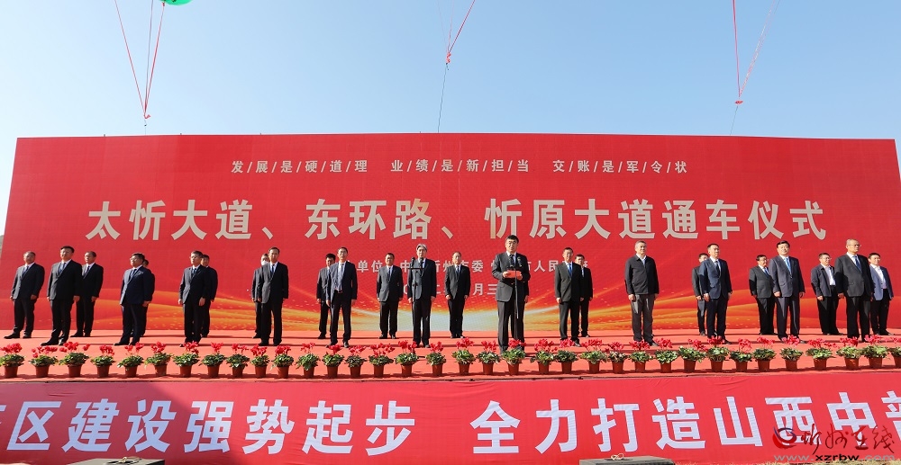 9月30日,我市舉行太忻大道、東環(huán)路、忻原大道通車儀式,市委書記朱曉東出席儀式并宣布太忻大道、東環(huán)路、忻原大道通車。市委副書記、市長李建國主持儀式。市委副書記、政法委書記郭奔勝,市人大常委會主任王珍,市政協(xié)主席范建民,山西建投集團公司副董事長、總經(jīng)理徐忠和,市領(lǐng)導(dǎo)劉卓良、趙新年、張文偉、溫建軍、張敏、張宇光、史紅波、賈玲香、崔崢嶺、李碩、王建峰、張文斌,市政府秘書長張艮生,中鐵十七局集團公司和中建三局集團公司相關(guān)負(fù)責(zé)人出席。副市長耿鵬鵬介紹項目建設(shè)情況。