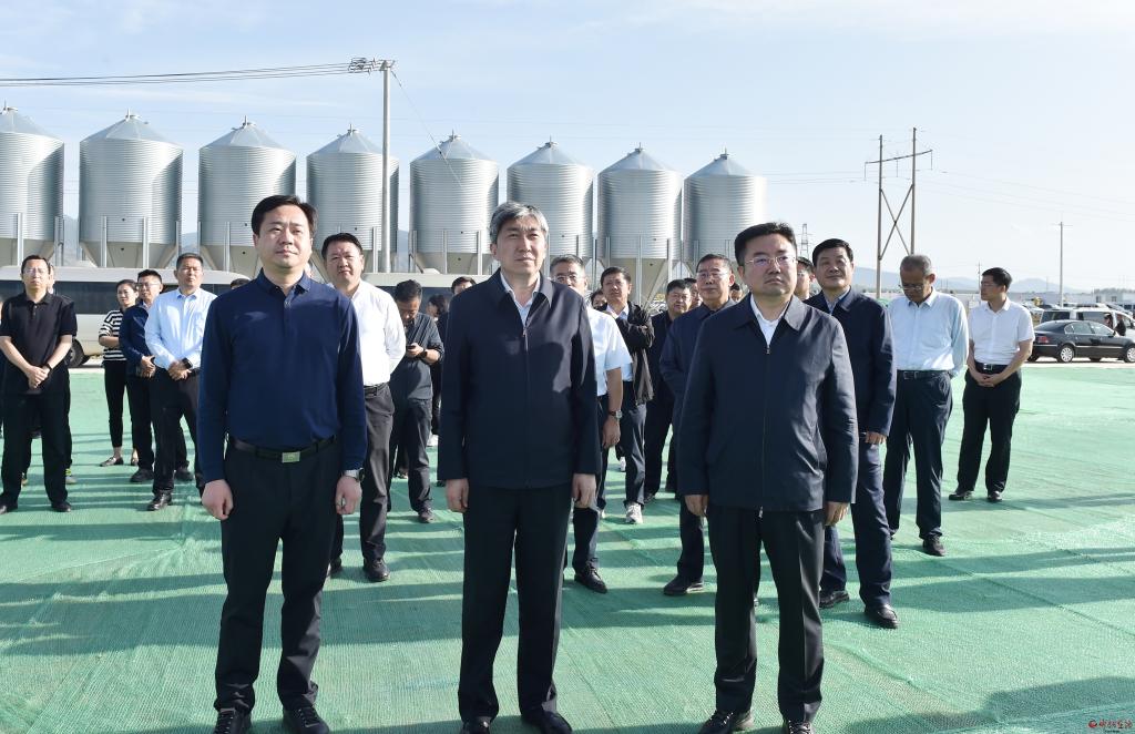 在東方希望畜牧有限公司觀摩檢查現(xiàn)代化高效生態(tài)循環(huán)養(yǎng)殖產(chǎn)業(yè)鏈項(xiàng)目建設(shè)情況。馮曉磊 攝