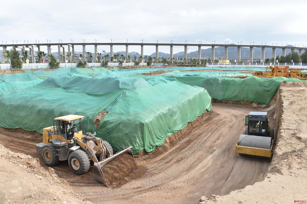 在西雙萬(wàn)噸智慧物流園觀摩檢查鐵路專(zhuān)用線(xiàn)運(yùn)營(yíng)情況。馮曉磊 攝