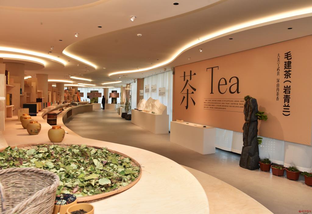 在農(nóng)業(yè)特優(yōu)館觀摩檢查藥茶專(zhuān)業(yè)鎮(zhèn)系列產(chǎn)品情況。馮曉磊 攝