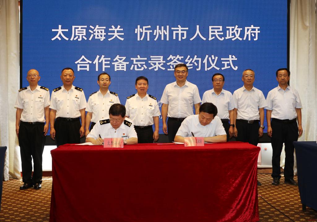 8月6日,忻州市人民政府與太原海關(guān)合作備忘錄簽約儀式在忻舉行。市委副書記、市長李建國,太原海關(guān)黨委書記、關(guān)長江林分別致辭;市政府黨組成員孟宏斌、太原海關(guān)副關(guān)長廉慧鋒代表雙方簽約;市政府秘書長張艮生主持簽約儀式。太原海關(guān)、忻州海關(guān),忻州市商務(wù)、財(cái)政、公安、市場監(jiān)管部門和五臺山機(jī)場負(fù)責(zé)人等見證簽約。