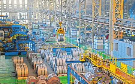 一卷卷鋼材成品排列整齊,3臺(tái)軋機(jī)隆隆作響,操作機(jī)器的人卻難覓蹤影?!艾F(xiàn)在車間自動(dòng)化的程度非常高,幾乎大部分的工作都由機(jī)器完成?!?號(hào)軋機(jī)前,安全生產(chǎn)部部長(zhǎng)房旭回答著記者的疑問,“你看這臺(tái)軋機(jī),它的啟動(dòng)和暫停其實(shí)并不在這里操作,而是在旁邊的智慧化集中控制中心實(shí)現(xiàn)的。工作人員在操作的同時(shí),那邊的系統(tǒng)還能同步記錄下實(shí)時(shí)的數(shù)據(jù),為后續(xù)的工序優(yōu)化和材料研發(fā)提供支持?!狈啃袼f的智慧化集中控制中心,投用于去年10月,除了“一鍵啟?!?,還實(shí)時(shí)記錄著整個(gè)車間的能源消耗和安全生產(chǎn)情況。