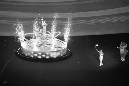 當(dāng)晚,“塞上祥云托起的巨幅畫卷”在高科技下展現(xiàn)了90分鐘的精彩,呈現(xiàn)了石窟文化、絲路文化、長(zhǎng)城文化、黃河文化、太行文化、紅色文化等山西深厚的歷史文化底蘊(yùn)。開幕式接近尾聲,全場(chǎng)變暗,6位火炬手在一束追光中接連完成了火炬?zhèn)鬟f。