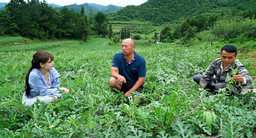 圖為貴陽市烏當(dāng)區(qū)新堡鄉(xiāng)新堡村一農(nóng)場(chǎng)負(fù)責(zé)人林正福查看西瓜生長(zhǎng)情況。(韋登亮 攝)