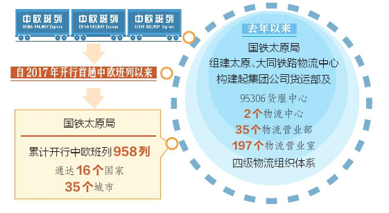 “自2017年開行首趟中歐班列以來,國鐵太原局累計開行的中歐班列已有958列,通達(dá)16個國家、35個城市?!眹F太原局貨運部科長田源介紹,“中歐班列已經(jīng)成為不沿海、不沿邊的山西省對外開放重要平臺?!?/p>
