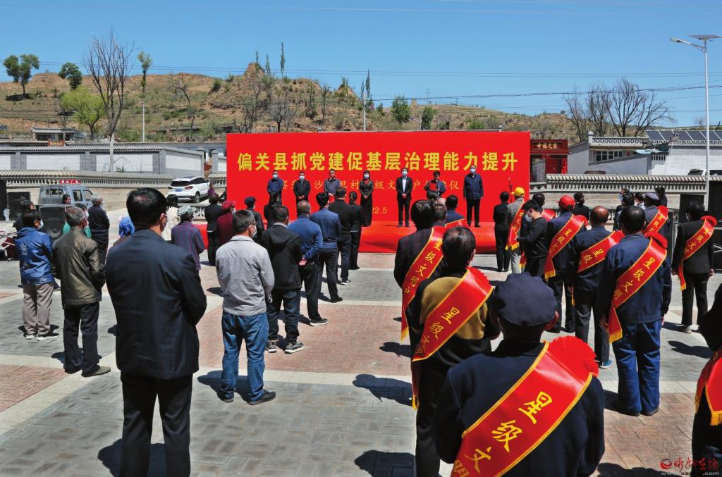 偏關(guān)縣為抓黨建促基層治理能力提升星級文明戶頒獎(jiǎng)授牌。 郝文俊攝