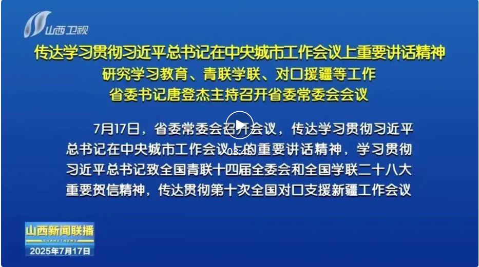 會(huì)議指出,要認(rèn)真落實(shí)第十次全國對(duì)口支援新疆工作會(huì)議精神,扛牢政治責(zé)任,完善工作機(jī)制,科學(xué)編制“十五五”援疆規(guī)劃,扎實(shí)推進(jìn)產(chǎn)業(yè)援疆、教育援疆、醫(yī)療援疆、文化潤疆和民族交往交流交融等重點(diǎn)任務(wù),為服務(wù)新疆社會(huì)穩(wěn)定和長(zhǎng)治久安作出山西貢獻(xiàn)。