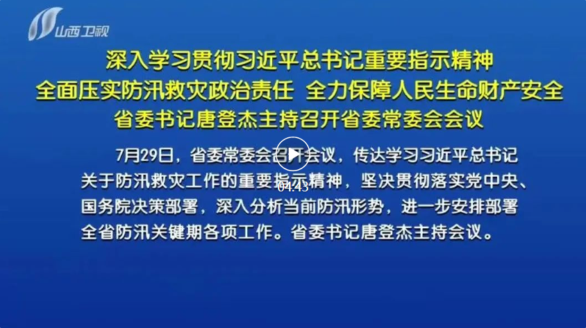 7月29日,省委常委會(huì)召開會(huì)議,傳達(dá)學(xué)習(xí)習(xí)近平總書記關(guān)于防汛救災(zāi)工作的重要指示精神,堅(jiān)決貫徹落實(shí)黨中央、國(guó)務(wù)院決策部署,深入分析當(dāng)前防汛形勢(shì),進(jìn)一步安排部署全省防汛關(guān)鍵期各項(xiàng)工作。省委書記唐登杰主持會(huì)議。