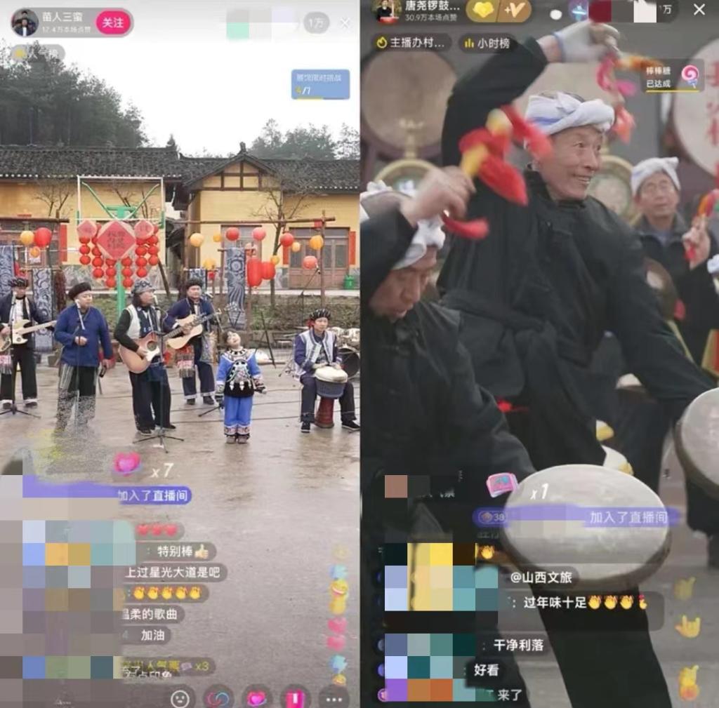 湖南省鳳凰縣臘爾山鎮(zhèn)苗寨中,4個“90后”苗族小伙組成樂隊自辦“村晚”,規(guī)模不大,唱火家鄉(xiāng);山西臨汾的村民們用簸箕、黃豆當(dāng)樂器,配合嗩吶和非遺晉南威風(fēng)鑼鼓,直播連線上千公里外的苗鄉(xiāng),南北大聯(lián)歡釋放獨(dú)特的精彩,吸引在線觀眾近800萬人……