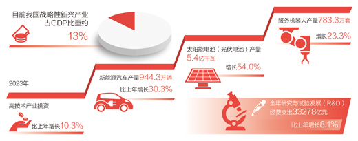 發(fā)展壯大戰(zhàn)略性新興產(chǎn)業(yè)。“戰(zhàn)略性新興產(chǎn)業(yè)具有創(chuàng)新活躍、技術(shù)密集等特點,為新質(zhì)生產(chǎn)力發(fā)展壯大提供了巨大空間?!备呶拇碚f,近年來,我國戰(zhàn)略性新興產(chǎn)業(yè)蓬勃發(fā)展,目前戰(zhàn)略性新興產(chǎn)業(yè)占GDP比重約13%。