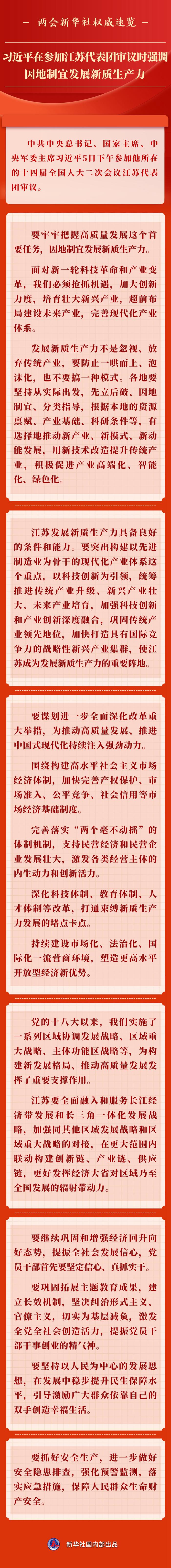 兩會新華社權威速覽丨習近平在參加江蘇代表團審議時強調 因地制宜發(fā)展新質生產力